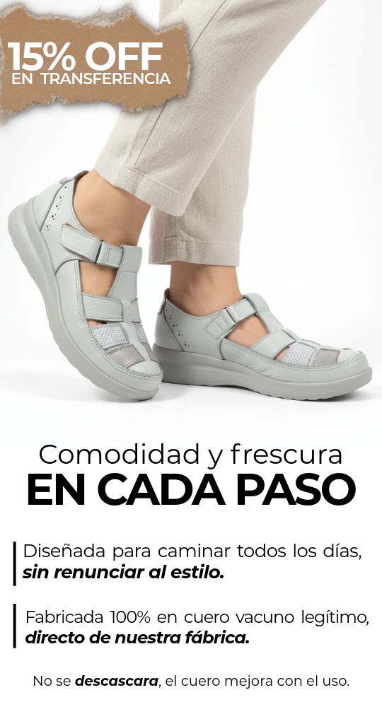 Fresca, liviana y combinable. Hecha en 100% cuero vacuno legítimo con confección de fábrica y garantía Palma Shoes. Ideal para quienes buscan comodidad real con la seguridad de un calzado cerrado y ventilación por sus calados laterales.