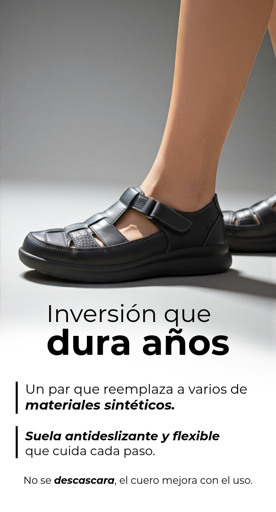 Diseñada para quienes buscan comodidad real y frescura sin perder contención. Hecha en cuero vacuno legítimo con calados laterales, base liviana y cierre con abrojo que asegura un calce firme y práctico.
