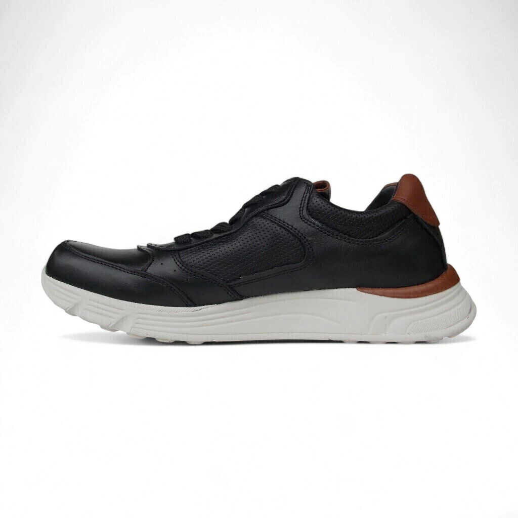 El diseño acompaña sin molestar. El cuero negro con detalles marrón le da carácter. La suela blanca suma contraste y ligereza. Perfecta para usar con jean, chino o pantalón de vestir relajado.